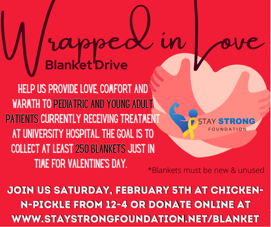 We are collecting new, unused blankets to give to pediatric and young adult patients at University Hospital currently undergoing treatment. Warm, cuddly blankets are needed. The patients love sherpa lined, fleece and soft, plush, fluffy, warm, cozy thick blankets.